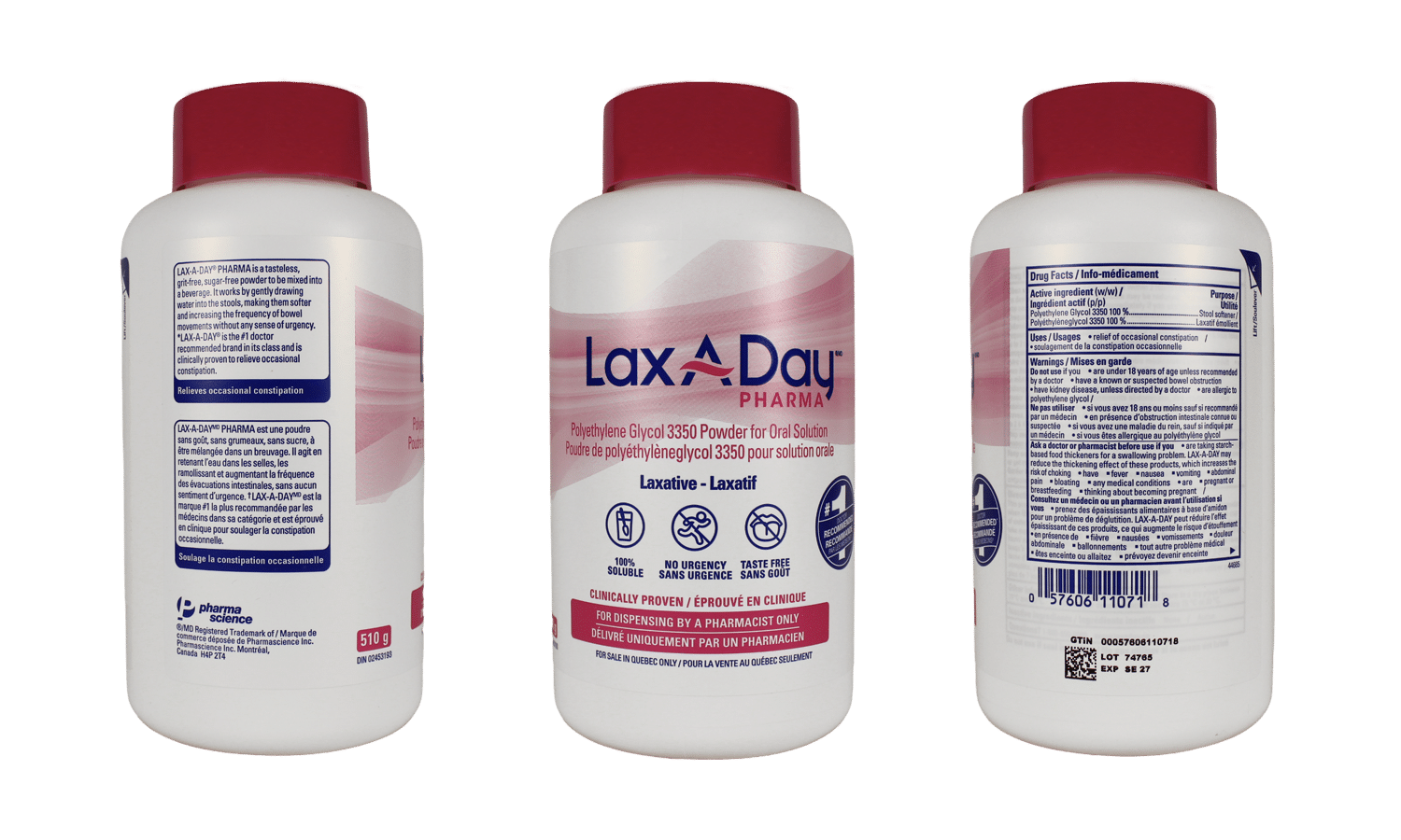 LAX-A-DAY POLYETHYLENE GLYCOL 3350 1G/G 02453193 510g 0 5760611071 8